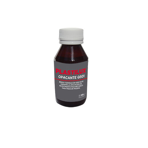 Colocar  de 100 hasta 250 cc de PLASTILUX OPACANTE Q-501® por cada litro de revestimiento de acuerdo al mateo deseado. Con 100 cc. se obtendrá un acabado semi mate con 250 cc uno mate.