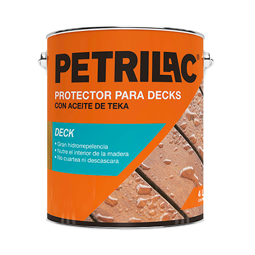 DECK PETRILAC® es un protector satinado de profunda penetración para maderas ubicadas al exterior: decks (cubiertas), escaleras, senderos, etc., expuestas o no al tránsito.