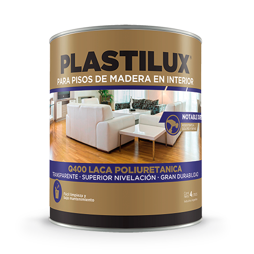 PLASTILUX® Q-400 es una laca poliuretánica curable por humedad para pisos de madera. Posee un secado rápido y un alto brillo; de excelente resistencia al agua y a los solventes. Es ideal para alto tránsito. Se utiliza en interiores, con muy buena resistencia a la abrasión. Se utiliza para plastificado de pisos de madera, tambièn es apta para muebles, aberturas y escaleras.